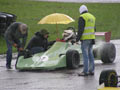 Между тем настало время заездов прибалтийских кузовных чемпионатов, и вот тут-то пошел дождь, то становившийся сильнее, то почти прекращавшийся. Вероятно, именно из-за него произошла единственная крупная авария дня: не удержал на трассе и разбил свой BMW-325 Роланд Дуда. В гонках Дуда участвует с середины семидесятых, лет двадцать назад был одним из лучших гонщиков СССР в классе A-1300 и мог бы стартовать в исторических заездах. Однако, как действующий гонщик, он предпочел выйти на старт кузовного чемпионата Латвии – и угодил в аварию. Сам Дуда, к счастью, не пострадал, но BMW, когда эвакуатор привез его в боксы, представлял собой весьма печальное зрелище.